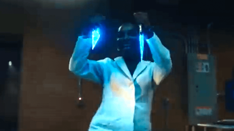 剪輯開始於 Aneka 使用發光的藍色刀具刺傷並電死一名裝甲入侵者。 Okoye 問她,“Aneka,你的矛在哪裡?”,Aneka 興高采烈地回答,“Shuri 給了我這些試一試。你知道,我更喜歡它們。”