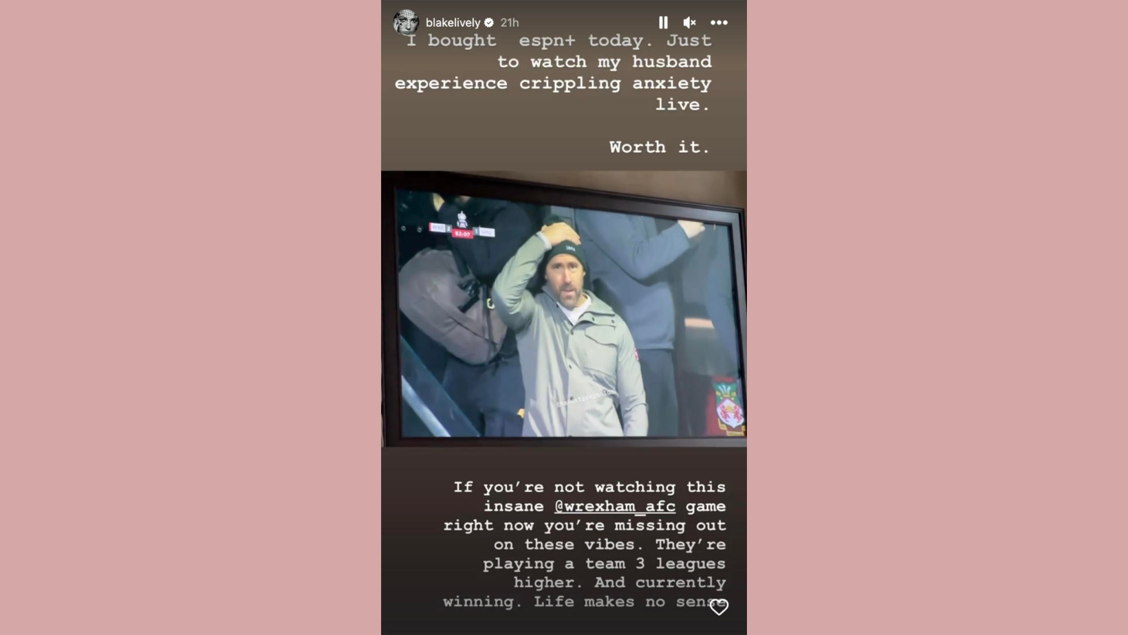 La pareja nunca deja la oportunidad de trollearse mutuamente, y Lively también aprovechó la oportunidad esta vez. Aprovechando un partido para morderse las uñas del Wrexham AFC, la estrella de Gossip Girl estaba viendo el partido desde su propia casa. Mientras disfrutaba del partido con su esposo poniéndose ansioso en la TV, publicó una historia en su Instagram, informada por Today.