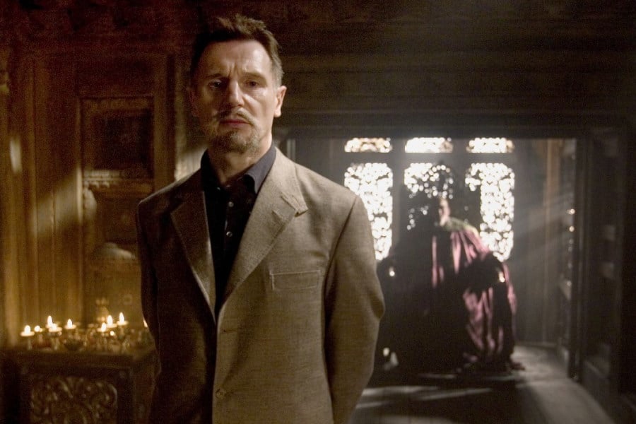 リーアム・ニーソンは、闇の組織、影の連盟のリーダー、ヘンリ・デュカード、別名ラーズ・アル・グールを演じた。
