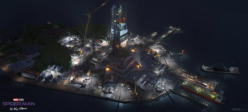 「今日の#SpiderMan#NoWayHomeのコンセプトアートの更新は、もう少し技術的なものになります。ほとんどの時間を、更新された自由の女神と自由の島周辺の建設現場の設計に費やしました。」