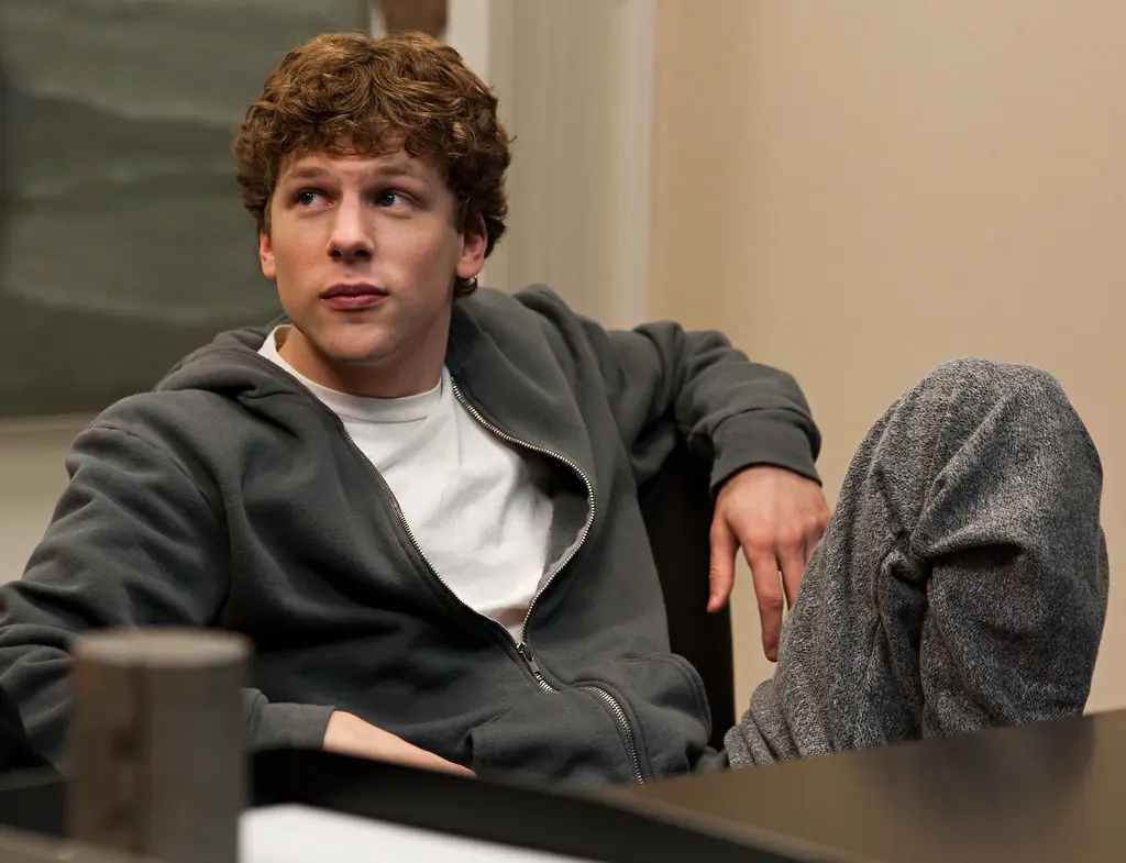 Jesse Eisenberg som Mark Zuckerberg i Det sociala nätverket (2010).