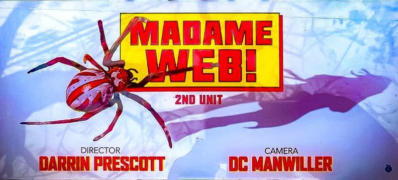 Det nya setfotot från Madame Web avslöjar att logotypen för filmen är en lila och röd spindel. Spindelns ben övergår till en skuggfigur, speciellt Dakota Johnson som titelroll. Även om ursprungsberättelsen om Peter Parker som Spider-Man å ena sidan har varit en av de mest kända berättelserna, råkar Madame Webs fortfarande vara unik i sig.
